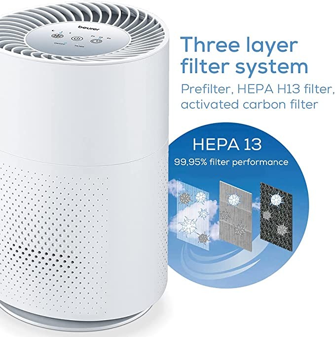 Beurer Air Purifier LR220UK with HEPA H13 filter captures 99.95% of harmful particles for cleaner air in your home, 2 power settings and turbo mode, room size 13-37 sqm