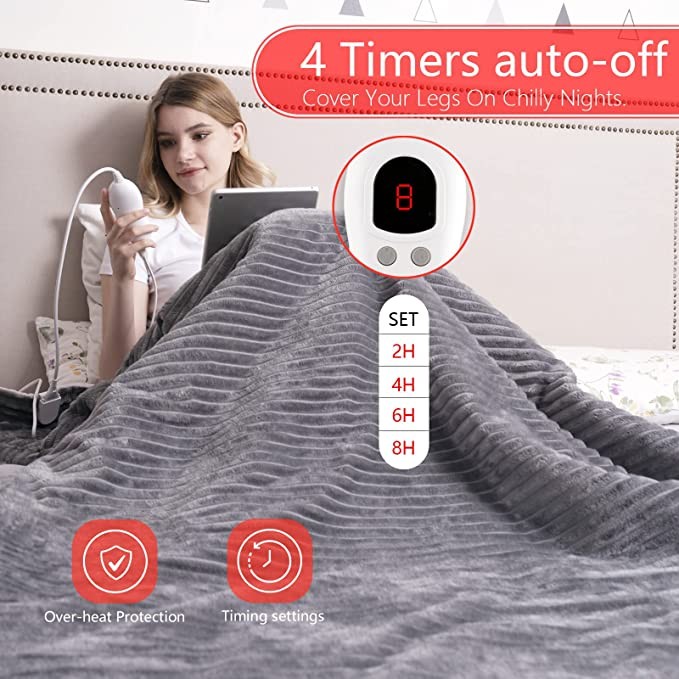 BUNANA electric blanket soft bed wool large 160x130cm, cover blanket heating throw with 3 heating levels and 2-8 hours automatic closing heating blanket, machine washable, simple operation, gray