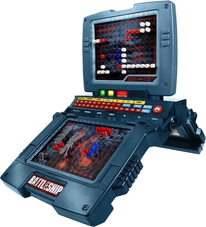 Electronic battleship game puts you at the helm, three different missions, electronic voice commands, realistic sound effects and combat, well-crafted, movie-based* and alien shipping