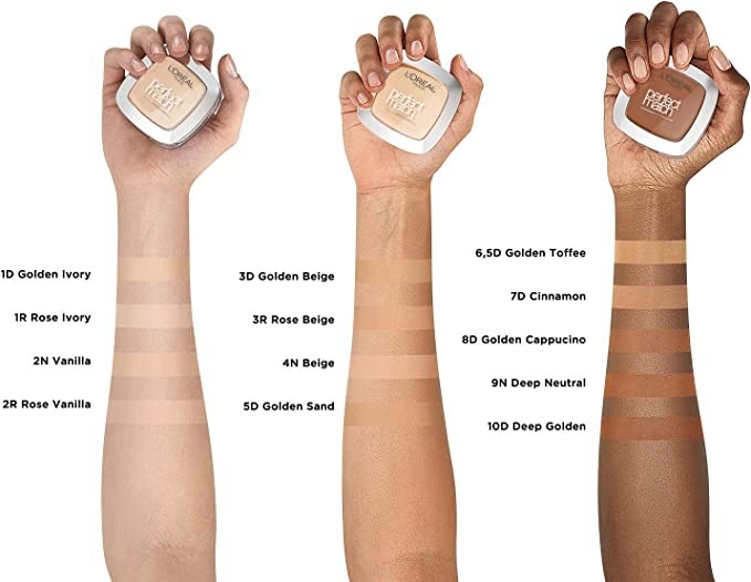 L'Oreal Paris Pressed Powder, SPF 8 Matte Pressed Powder Including Mirror and Sponge, Perfect Matching Pressed Powder, 3.D/3.W Golden Beige, 9g