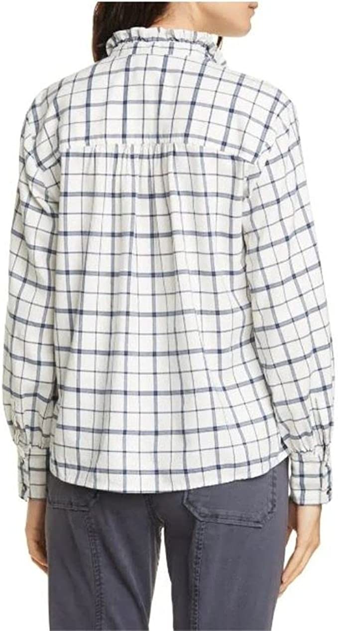 Rebecca Taylor Women's White Check Cuff Neck Button-Up Top Size XS