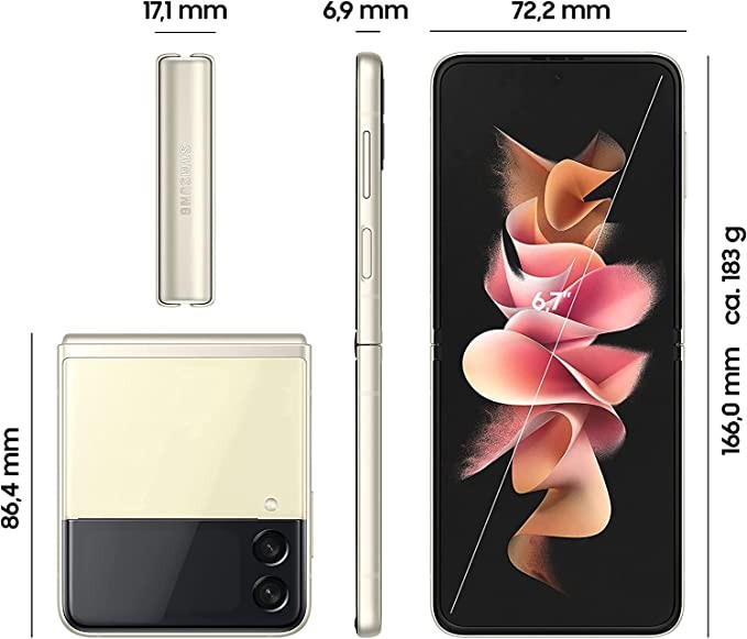 Samsung Galaxy Z Flip3 5G (17.03 cm), Foldable Phone, No Contract, Large 1.9" Display, 256 GB RAM, 8 GB RAM, Cream