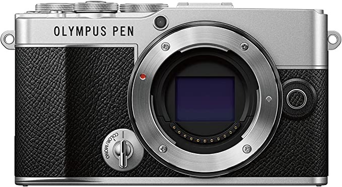 The body of OLYMPUS PEN E-P7 is silver