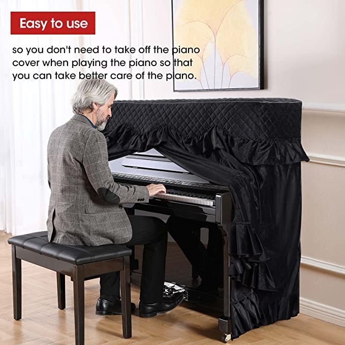 Velvet Upright Piano Cover Thickened Heavy Duty Full Coverage Piano Cover Premium Quilted Dust and Moisture Resistant Piano Case Universal Standard Size Piano Cover Upright 62"
